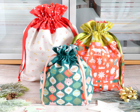 Bright Red & Green Holiday Fabric Gift Bags *Regular Size*