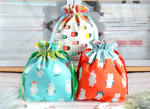 Bright Holiday Bears Fabric Gift Bags *Regular Size*