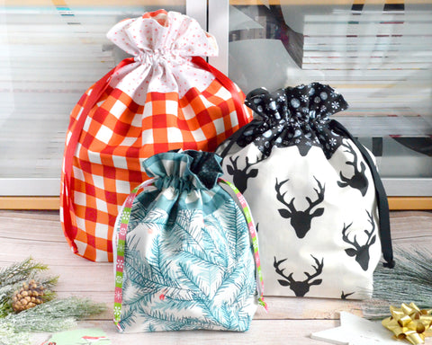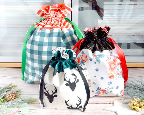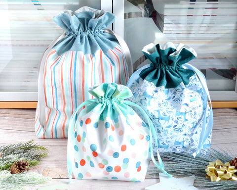 Bright Holiday Fabric Gift Bags *X-Large, Large, & Regular Sizes*