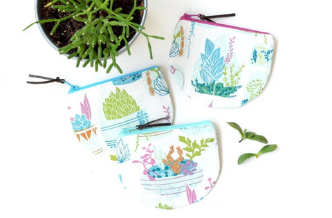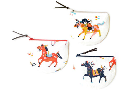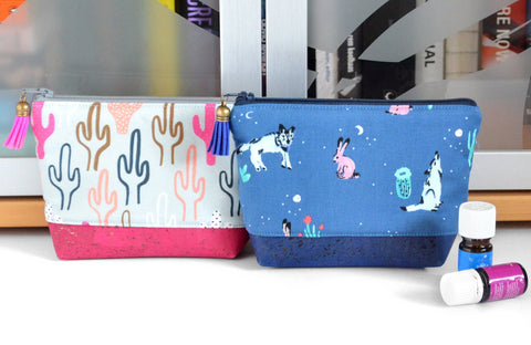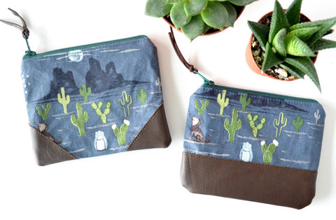 Waxed Cotton Black Feather Double-Zip Wristlet