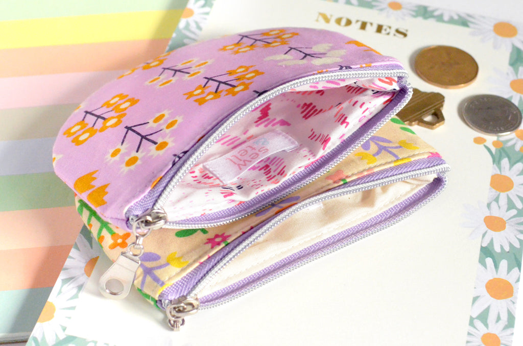 โ˜… This purple & beige coin purse features two fun floral-print fabrics!