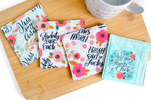 Pink & Blue "Sweary" Holiday Drink Coasters