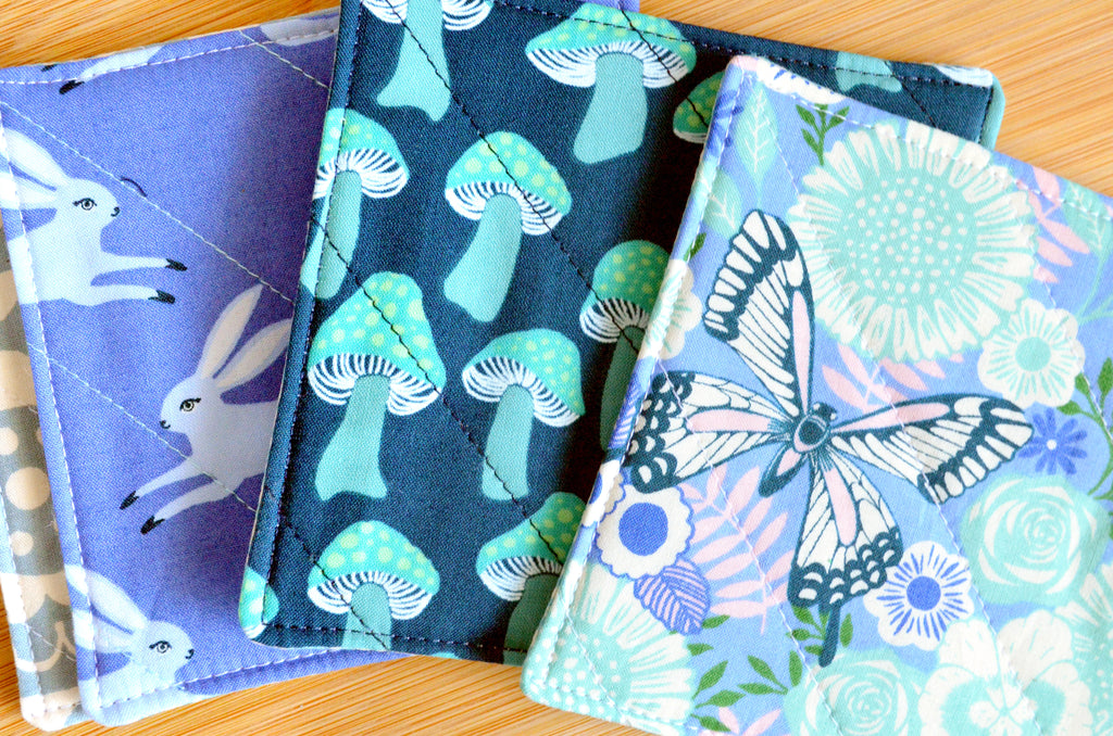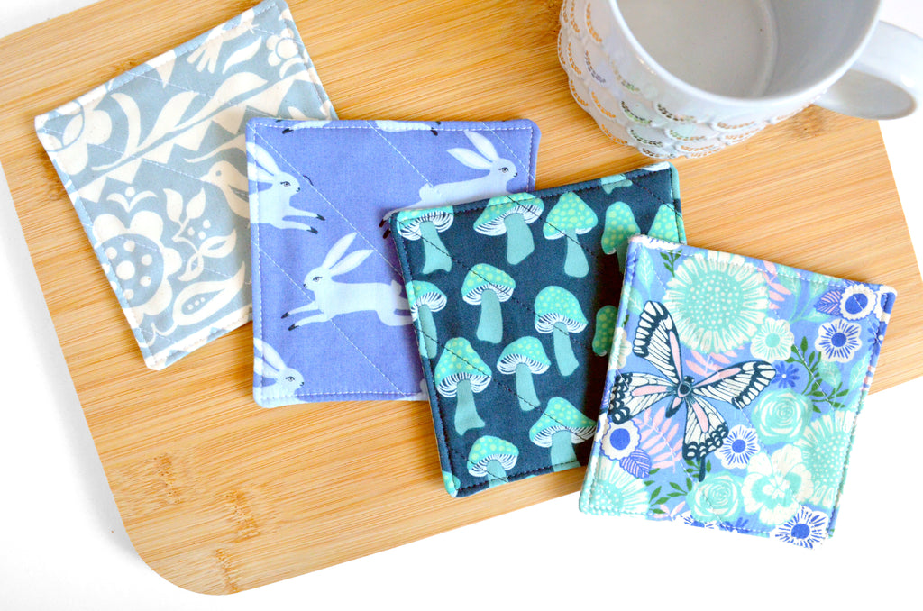 Our quilted fabric coaster sets are sure to bring a pop of colour to your coffee table or dining room, while also providing you with practicality and versatility! Made with a layer of cotton quilt-batting inside, these coasters are great at soaking up unwanted condensation from your drink, and wonโt stick to your glass when you pick it up! Available in a wide-range of fun prints and colours, these coasters also make for the perfect unique housewarming or hostess gift!