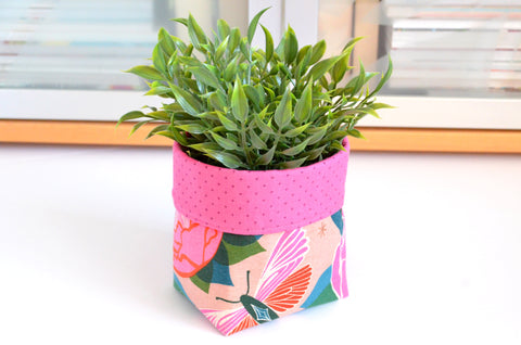 Pink Butterfly Floral Fabric Plant Pot
