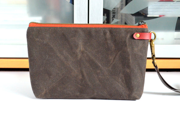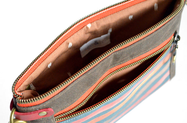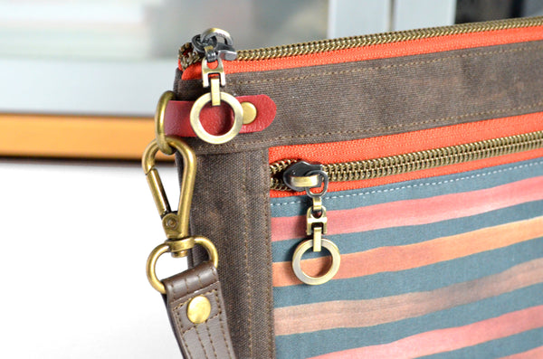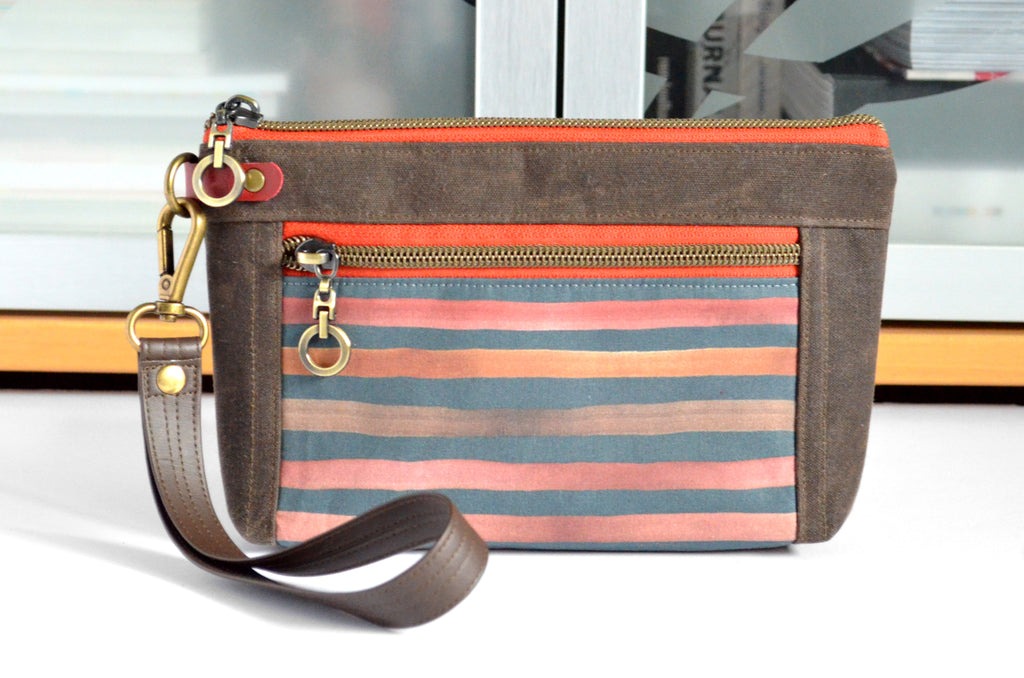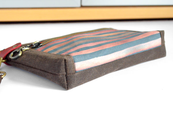 Waxed Canvas Chestnut Stripe Double-Zip Wristlet