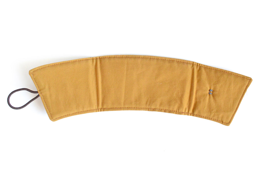 Calling all coffee and tea lovers! These reusable coffee sleeves are an eco-friendly alternative to disposable cardboard sleeves which often end up in the trash. Available in a wide range of bright and beautiful fabrics and made with an inner layer of cotton batting, your hands will be kept safe from hot heat or the cold, wet condensation of iced beverages! The elastic and button closure makes these sleeves fully adjustable to fit a wide range of disposable cups or reusable tumblers and thermoses. Keep one in your bag, one at the office, and in the car for your coffee runs! Paired with a gift card to your local coffee shop, these make the perfect gift for the coffee or tea lover in your life!
