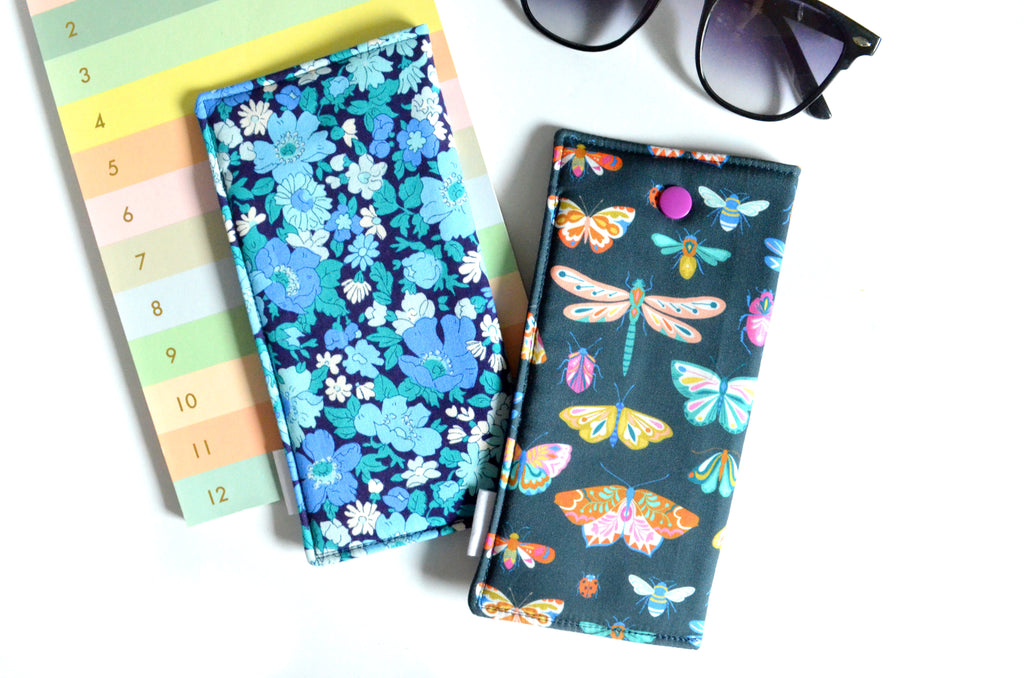 ★ These blue glasses cases feature two fun butterfly & floral print fabrics