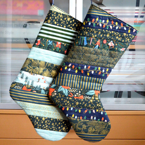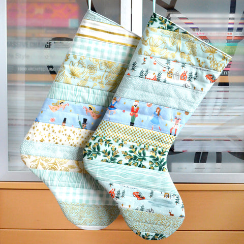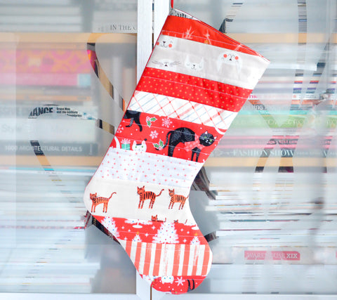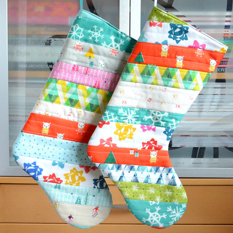 Kitschy Christmas Holiday Stocking in Pink & Blue