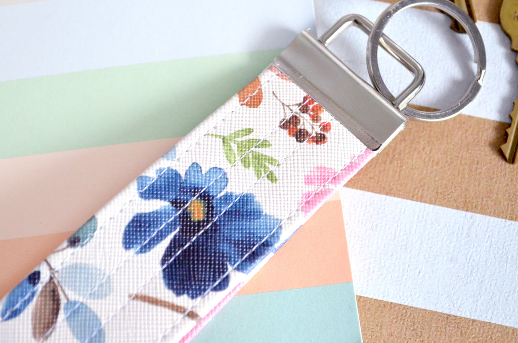 โ Key fob will measure approximately 8.5โ in total length, which forms a 4.25โ loop. The strap measures 1.25โ wide.