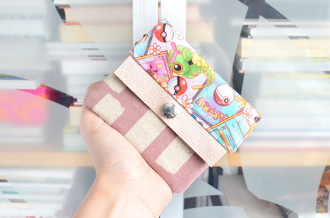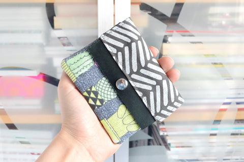 Green Checker Mushroom Floral Mini Leather Snap Wallet