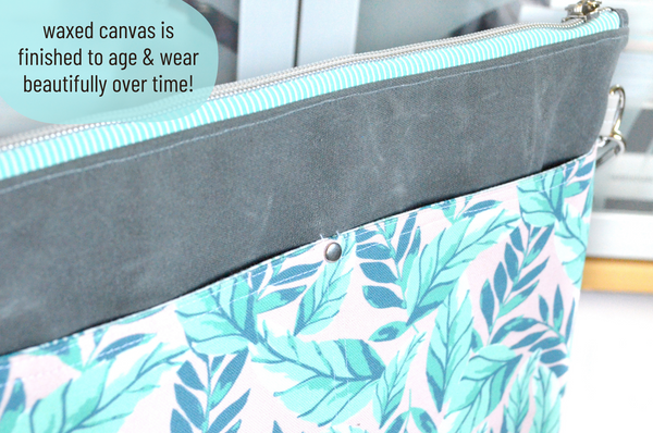 โข Made with quality waxed canvas & designer fabrics on the exterior