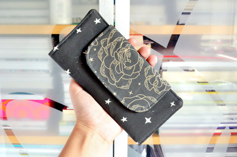 Black Favourite Flowers Crossbody Tote Bag