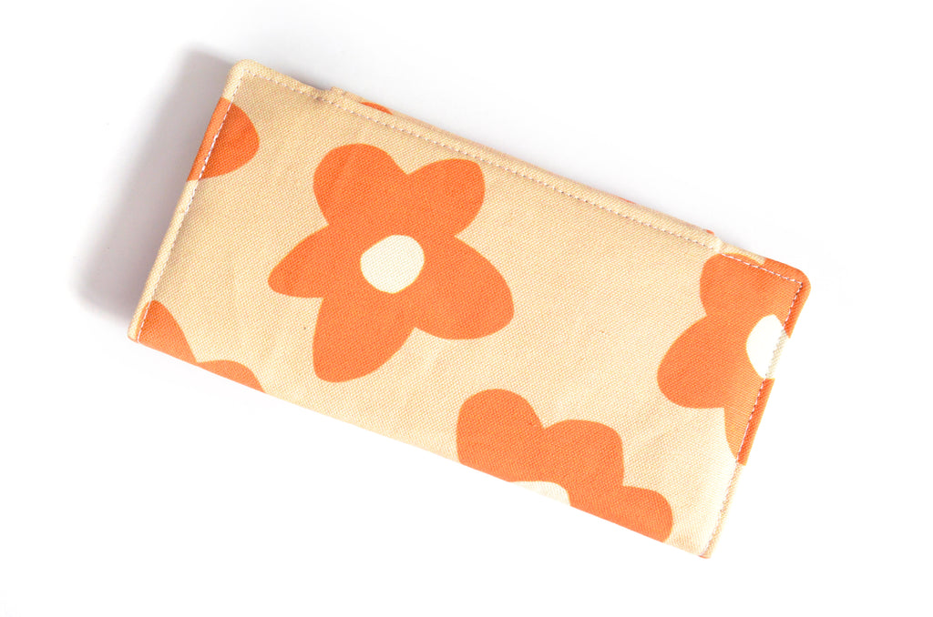 โ This wallet features a fun retro daisy-print canvas exterior, with a coordinating interior! Please note, exact fabric placement may vary from some of the photos shown.