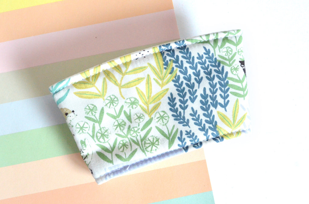 Calling all coffee and tea lovers! These reusable coffee sleeves are an eco-friendly alternative to disposable cardboard sleeves which often end up in the trash. Available in a wide range of bright and beautiful fabrics and made with an inner layer of cotton batting, your hands will be kept safe from hot heat or the cold, wet condensation of iced beverages! The elastic and button closure makes these sleeves fully adjustable to fit a wide range of disposable cups or reusable tumblers and thermoses. Keep one in your bag, one at the office, and in the car for your coffee runs! Paired with a gift card to your local coffee shop, these make the perfect gift for the coffee or tea lover in your life!