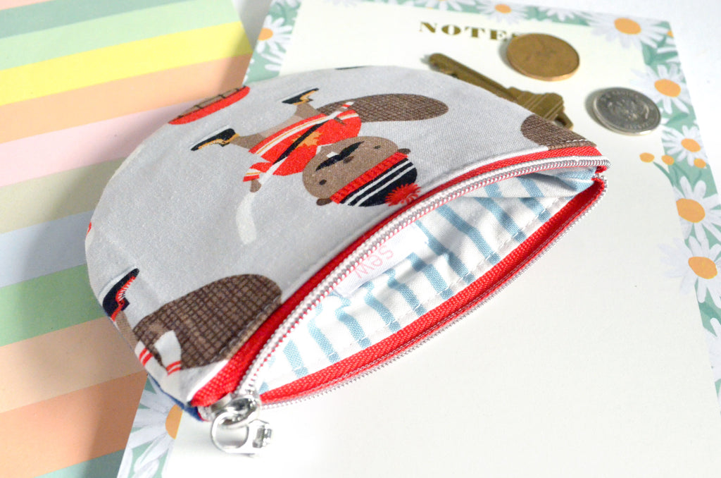 โ Thisย grey coin purse features a fun hockey beaver printย fabric!