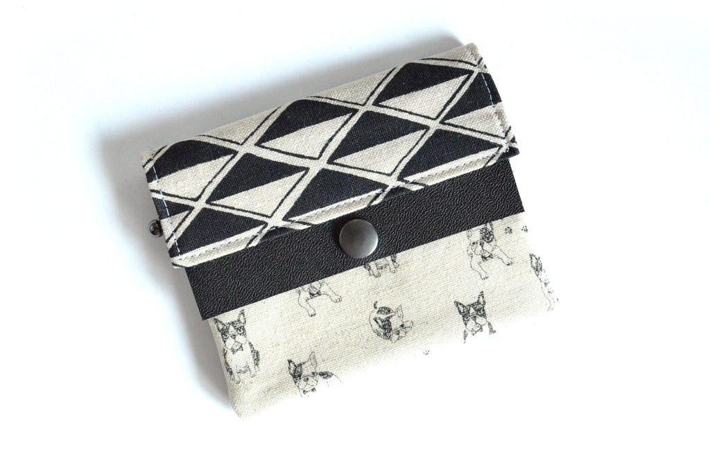 This black & white wallet features a fun dog-print canvas fabric on the exterior, with a matching interior.