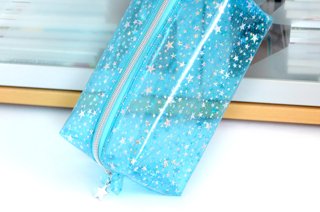 *Clear Vinyl* Blue Sparkle Star Boxy Toiletry Bag