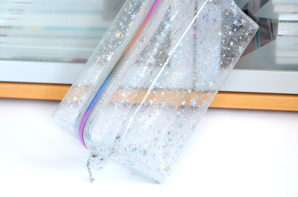 *Clear Vinyl* Glitter Stars Toiletry Bag