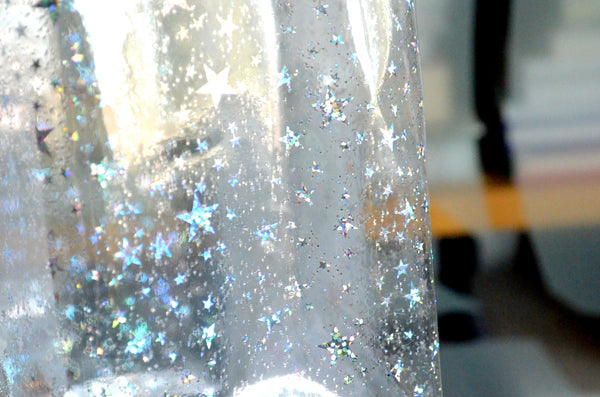 โ Thisย fun boxy bag is made with aย clear TPU vinylย fabric, featuring aย gorgeous glitter starย print! Please note, exact fabric placement & zipper pullย style may vary from some of the photos shown.