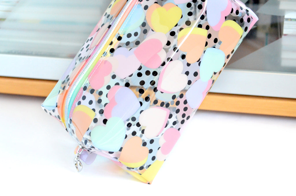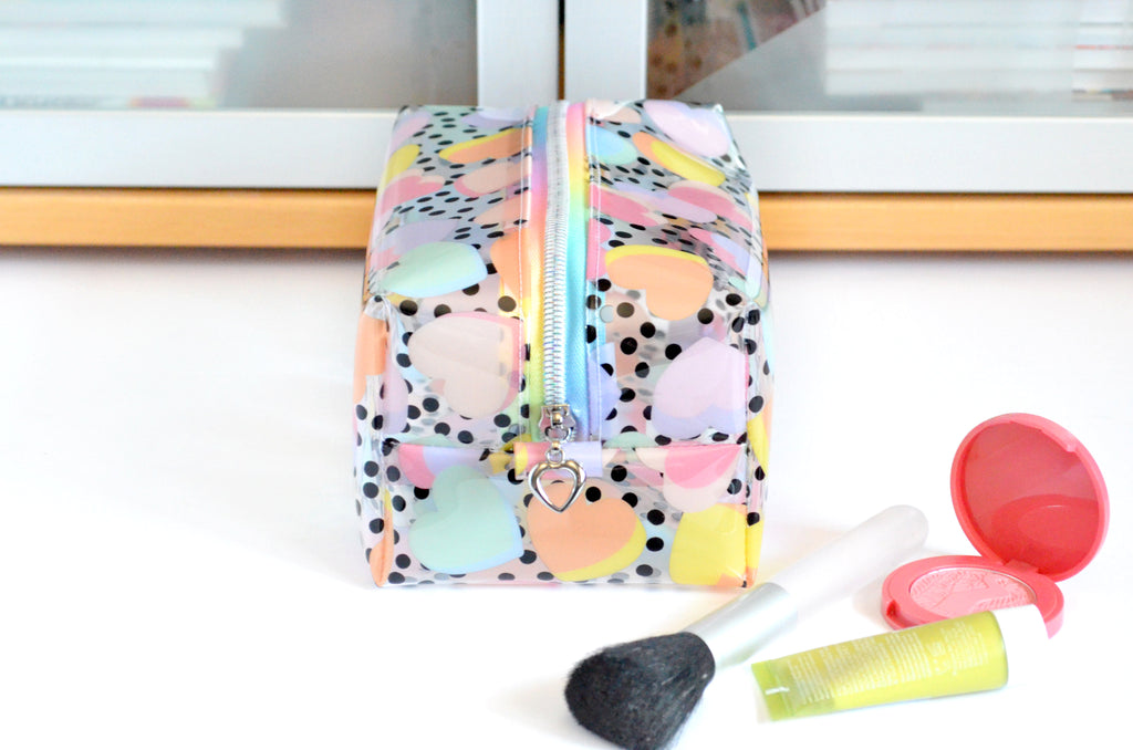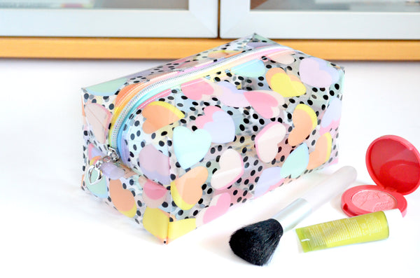 *Clear Vinyl* Large Candy Hearts Boxy Toiletry Bag