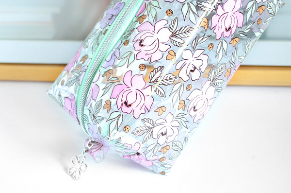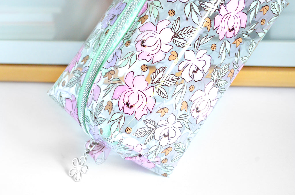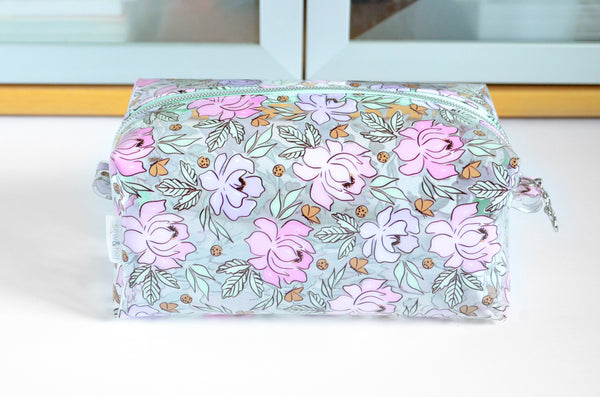 *Clear Vinyl* Pink & Purple Floral Toiletry Bag
