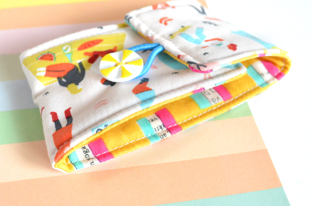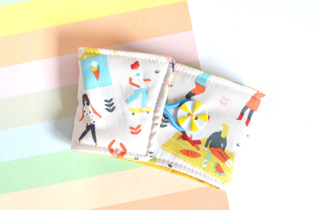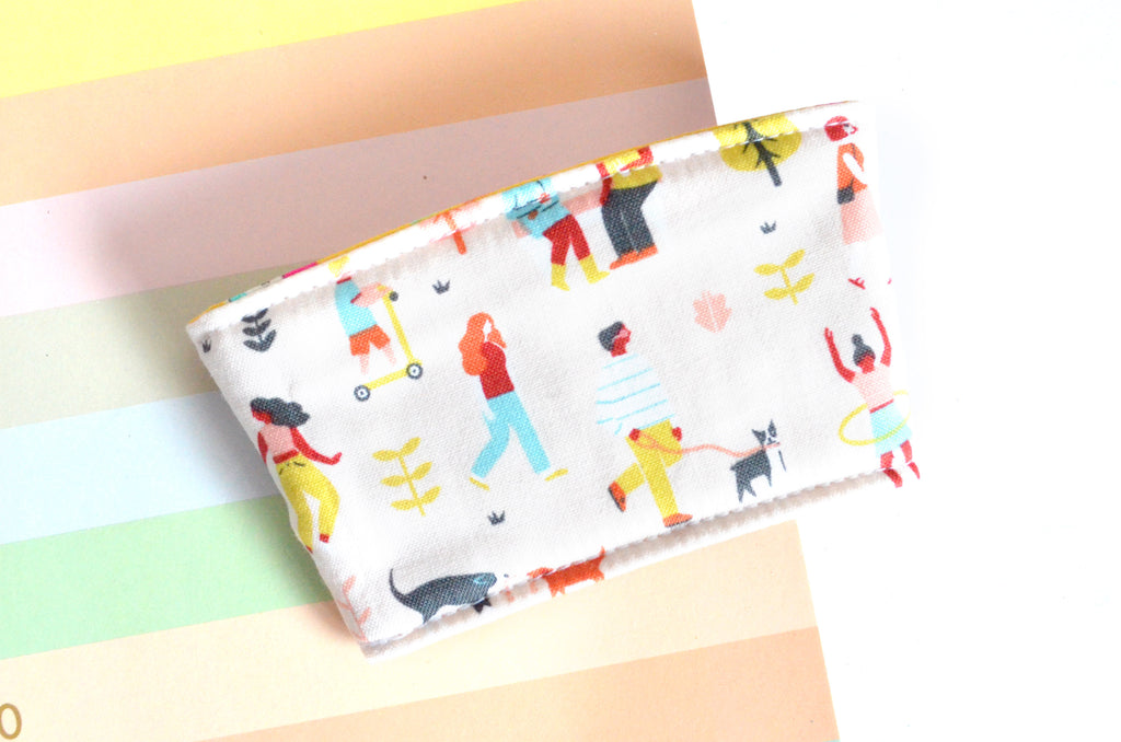 โ This white coffee sleeve is made with a fun neighbourhood-themed fabric, and paired with a coordinating button! Please note that exact fabric placement may vary from the photos shown.