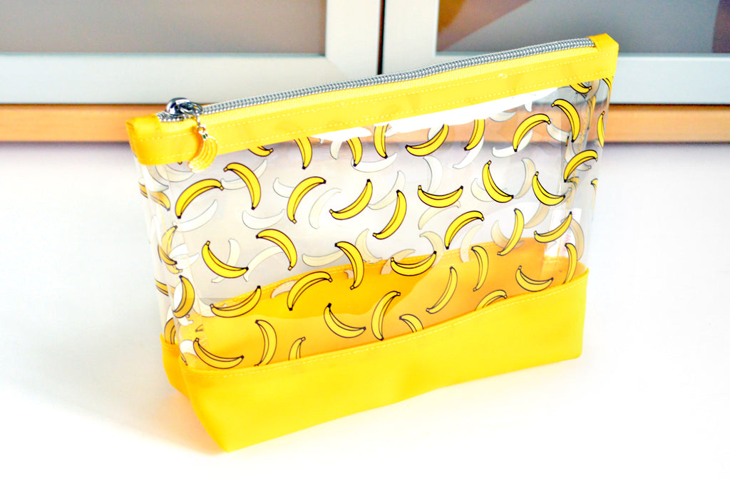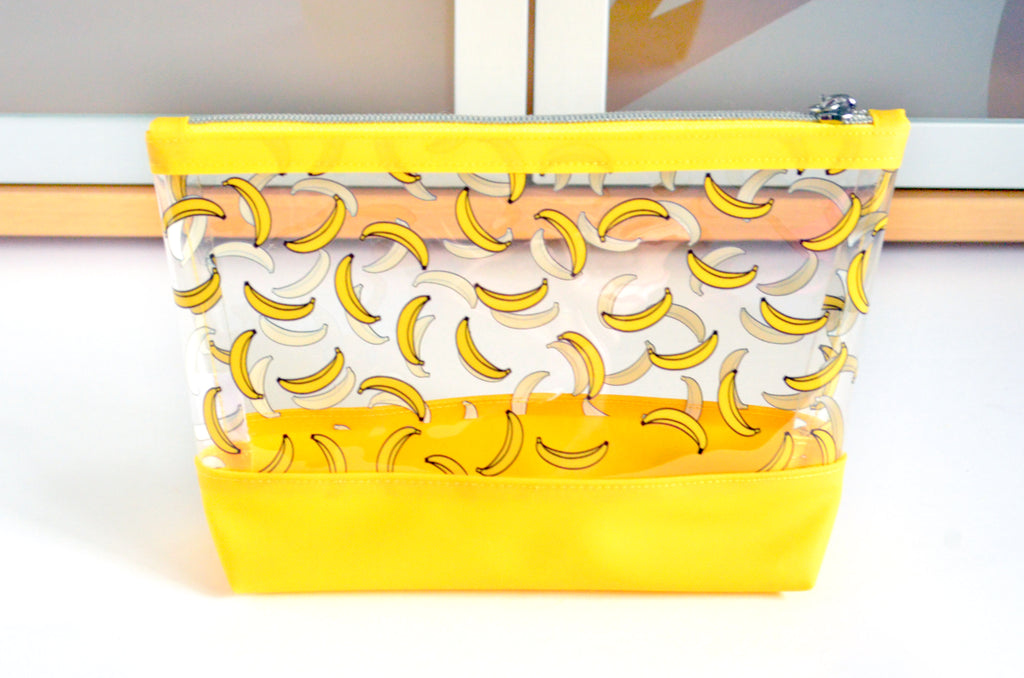 ★ This fun cosmetic bag is made with a banana-print clear TPU vinyl & accented with a yellow jelly vinyl! Please note, exact fabric placement may vary from some of the photos shown.