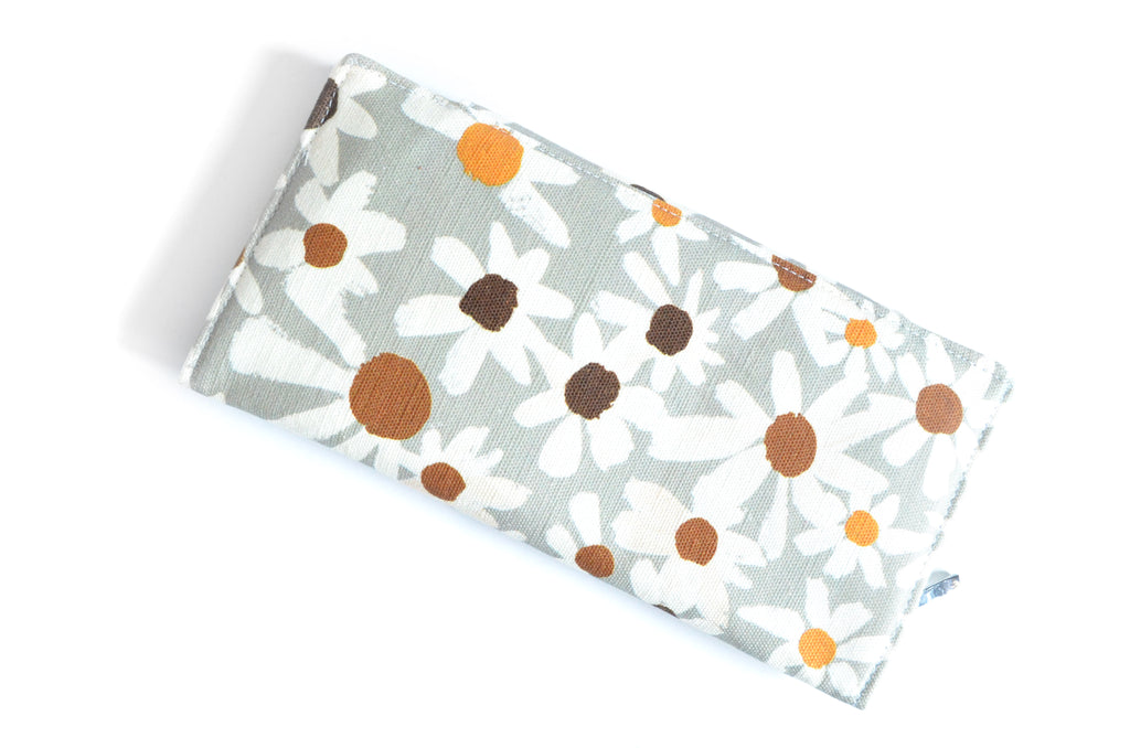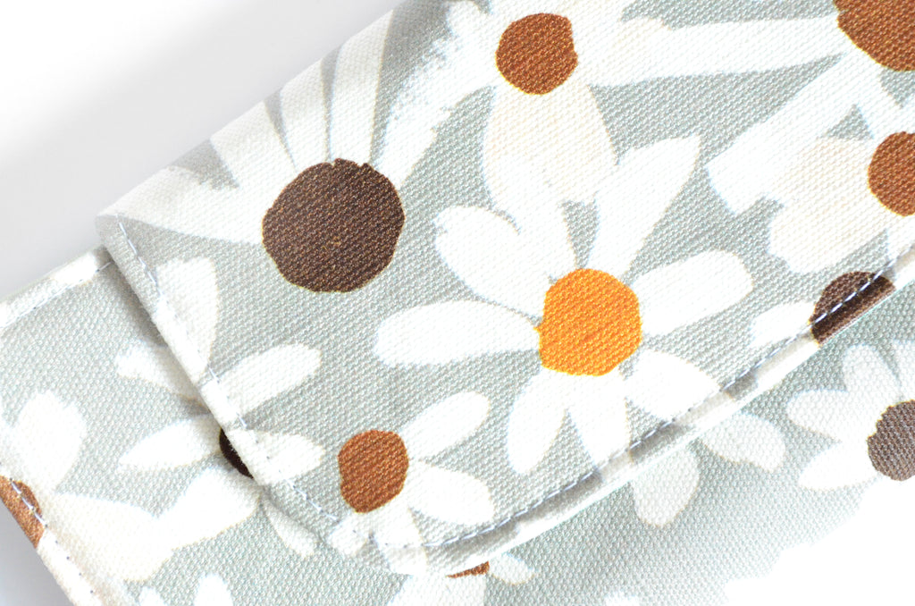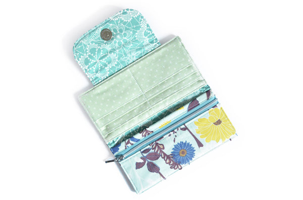 โ This wallet features aย beautiful light sage-blueย floral canvas exterior, with a coordinating interior! Please note, exact fabric placement may vary from some of the photos shown.