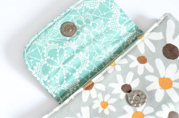 Introducing the perfect wallet for those of us who just need to carry the essentials! If youโre tired of carrying around that heavy, bulky wallet of yours, then these super slim, lightweight, minimalist wallets are perfect for you! Each wallet is made with beautiful canvas or linen fabric exteriors, which provide extra durability and longevity for use every day. The interior features six card slots, a zippered coin pocket, and two additional slip pockets, each made with coordinating cotton prints. A magnetic snap closure makes it easy to shut on the go, and keeps everything safely secured inside. Available in a variety of gorgeous prints and patterns, youโll be sure to find the perfect wallet for yourself or someone special!