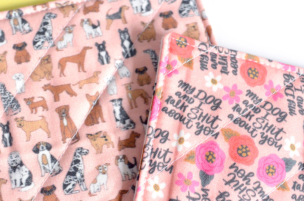 โ This set of four fabric coasters features a fun selection of fabrics withย "sweary" sayings designed by Canadian artist and illustrator Cynthia Frenette! Please note, exact fabric placement may vary from some of the photos shown.