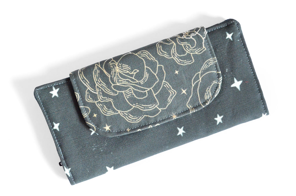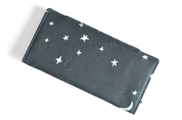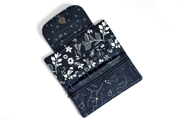 โ This wallet features aย black celestial & floralย canvas exterior, with a coordinating interior! Please note, exact fabric placement may vary from some of the photos shown.