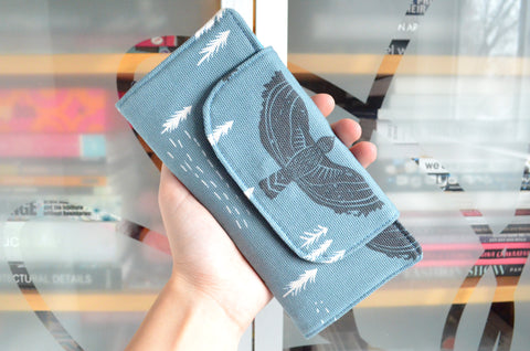 Waxed Canvas Blue Bird Double-Zip Wristlet