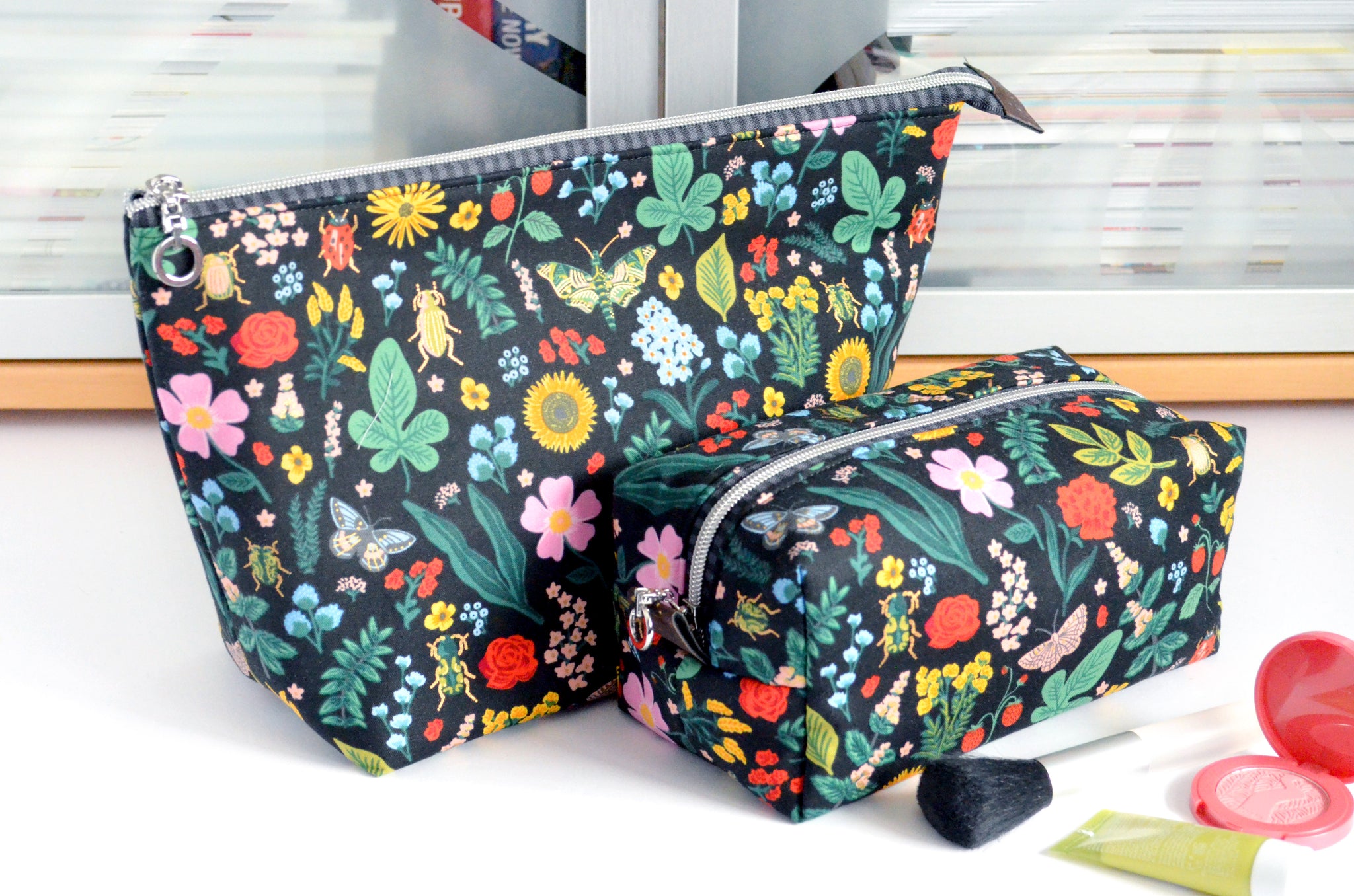 These toiletry bags are perfect for use both during travel and for everyday organization, featuring bright and beautiful designer cotton fabrics. The jumbo toiletry bags are the largest size of zippered pouch available in our shop, measuring a generous 13-inches across the top and 8-inches tall, with an extra-wide gusseted bottom! They feature six interior pockets, which means you'll easily stay organized despite how much you can fit inside! Both the boxy-style and jumbo toiletry bags are made with a gorgeous coordinating faux-metal zippers, and cork-leather pull tabs on the ends for easy opening. Each bag is also made with the perfect combination of cotton batting and interfacing, which makes these bags ultra-plush yet sturdy! Made in a wide variety of gorgeous prints and patterns, you're sure to find the perfect bag for yourself or for gifting!
