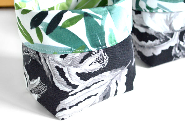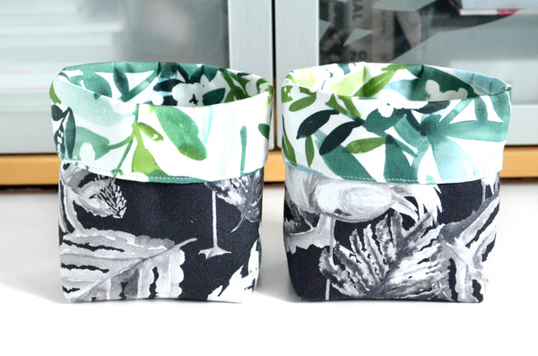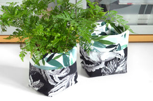 These fun fabric plant pots are made from a variety of beautiful cotton-canvas prints, with bright coordinating lining fabrics which peek out the top! These fabric covers are the perfect solution to the ugly plastic pot your plant comes home in from the store, with no more need for messy re-potting. Just slip your existing plant pot into this bin, and voila! Theyโre even height-adjustable to perfectly suit different sizes of plants, or when adapting these bins for other specific needs. These little buckets also make the perfect container for holding pens and pencils on your desk, cosmetic brushes in the bathroom, essential oils on your nightstand, or any other odds and ends you need to keep organized. Their versatile uses make these a great gift for gardeners, co-workers, teachers, or yourself!