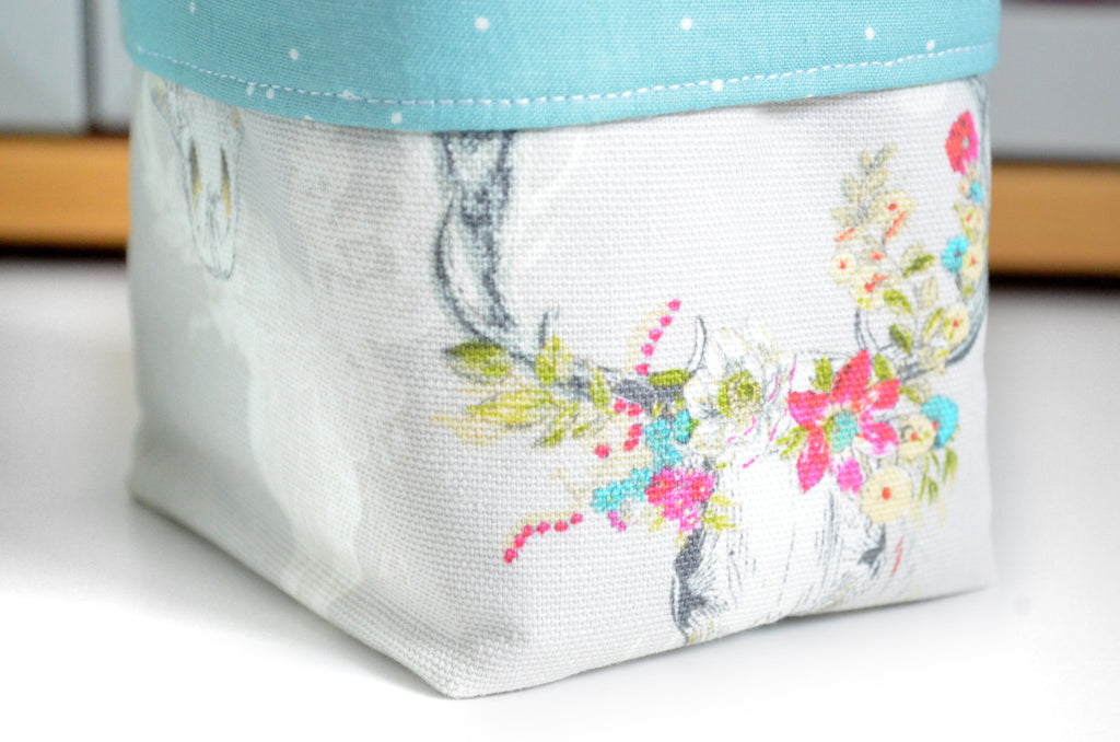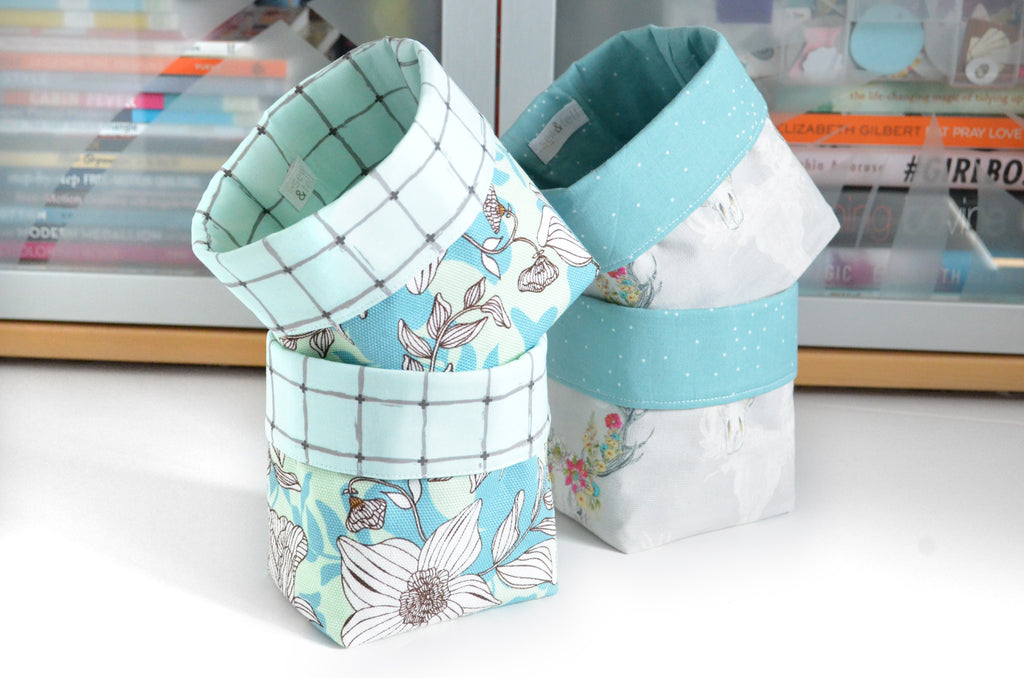 โ These fabric pots are made from a variety of beautiful canvas-cotton fabrics, with coordinating linings which peek out the top! As this is a large-scale print, please note that exact fabric placement may vary from some of the photos shown.