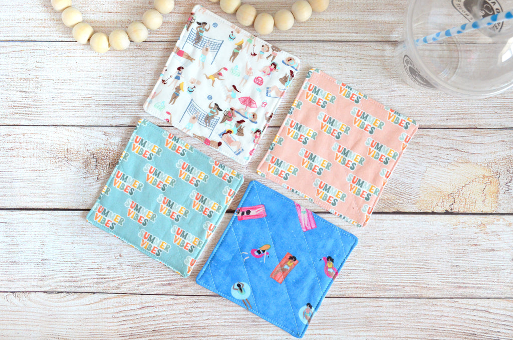 โ This set of four fabric coasters features a fun selection of summer print fabrics! Please note, exact fabric placement may vary from some of the photos shown.ย