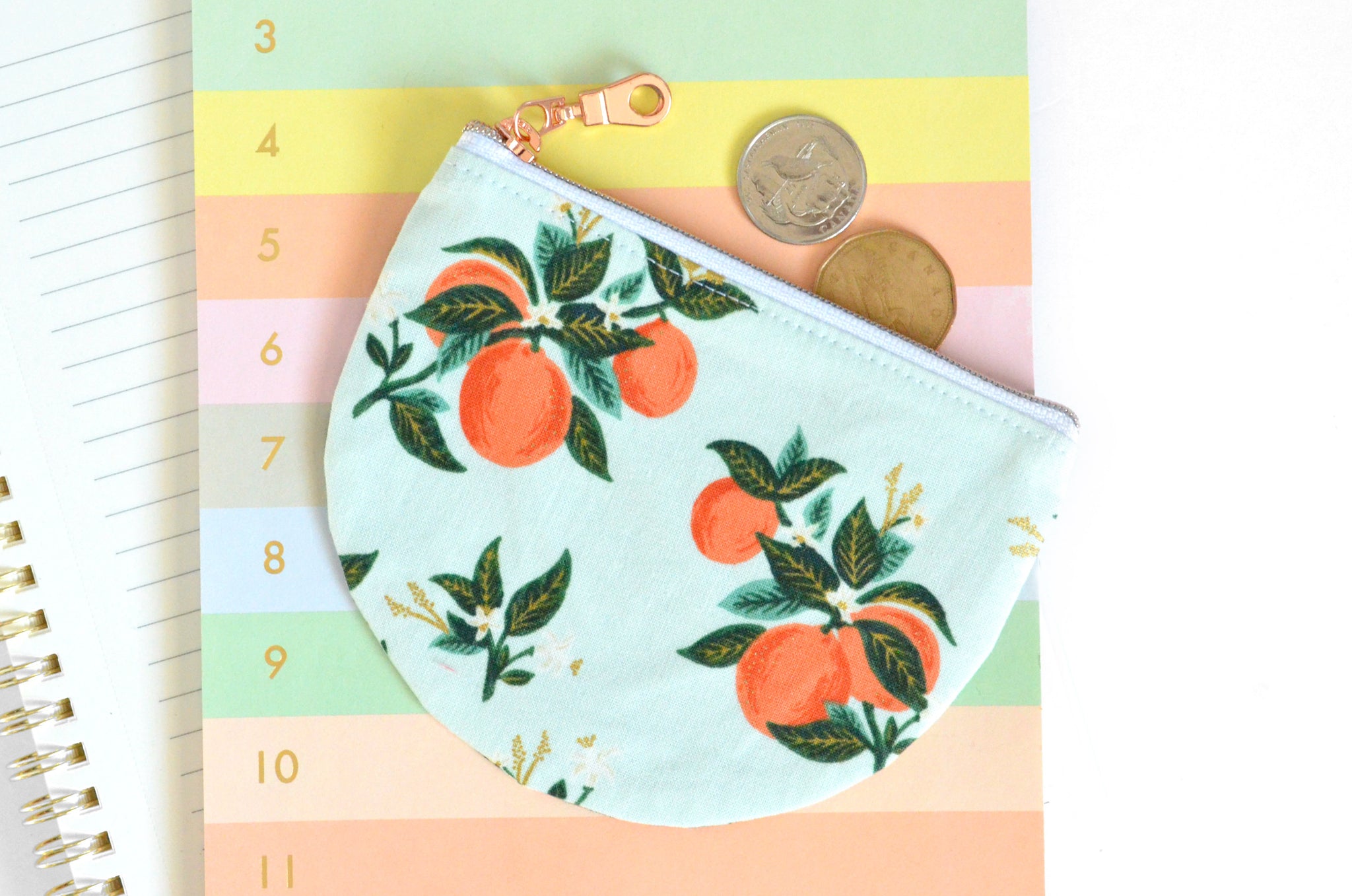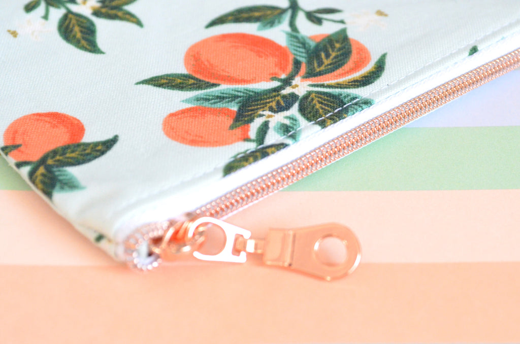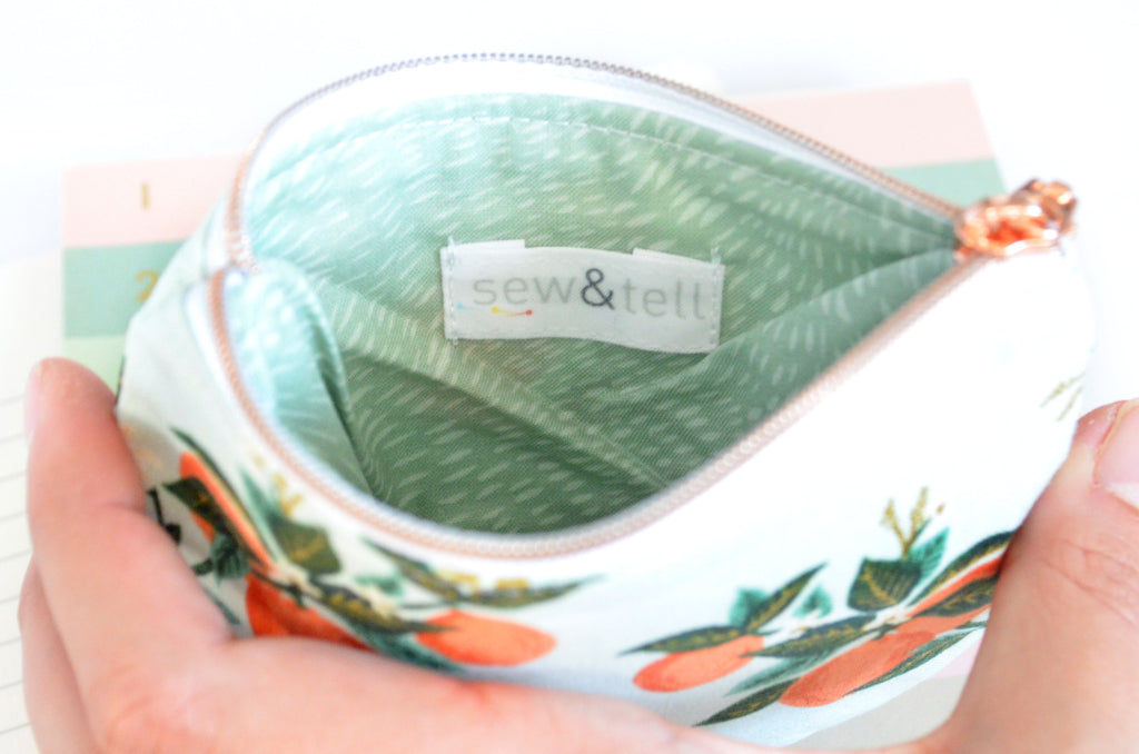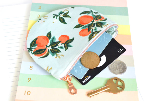 โ This blue coin purse features a beautiful citrus floral printย from Rifle Paper Co! Please note that exact fabric placement may vary slightly from the photos.