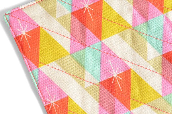 Our quilted fabric coaster sets are sure to bring a pop of colour to your coffee table or dining room, while also providing you with practicality and versatility! Made with a layer of cotton quilt-batting inside, these coasters are great at soaking up unwanted condensation from your drink, and wonโt stick to your glass when you pick it up! Available in a wide-range of fun prints and colours, these coasters also make for the perfect unique housewarming or hostess gift!