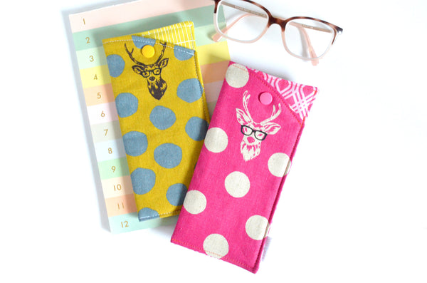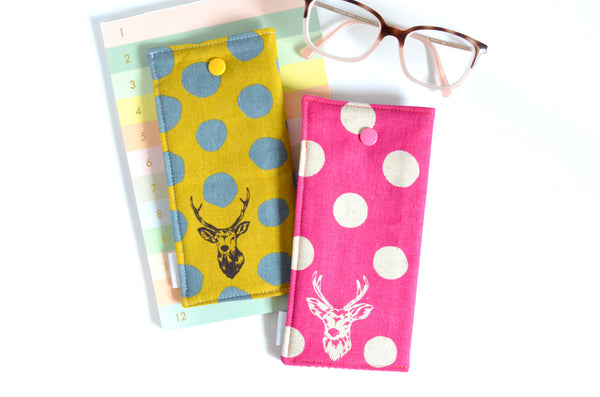 ★ These pink & yellow glasses cases feature two fun deer print fabrics