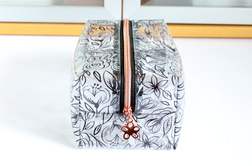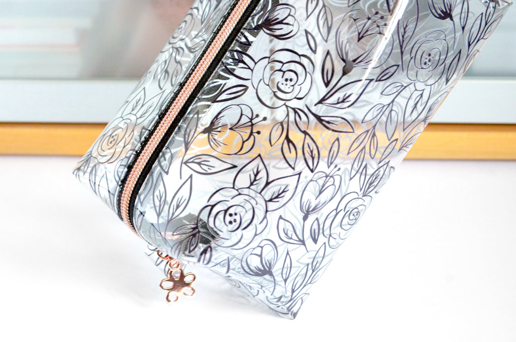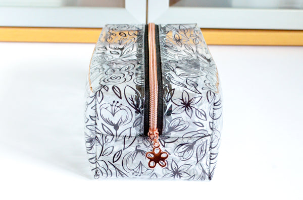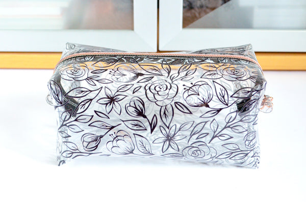 *Clear Vinyl* Inked Floral Toiletry Bag