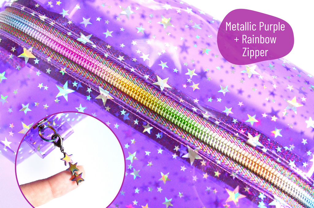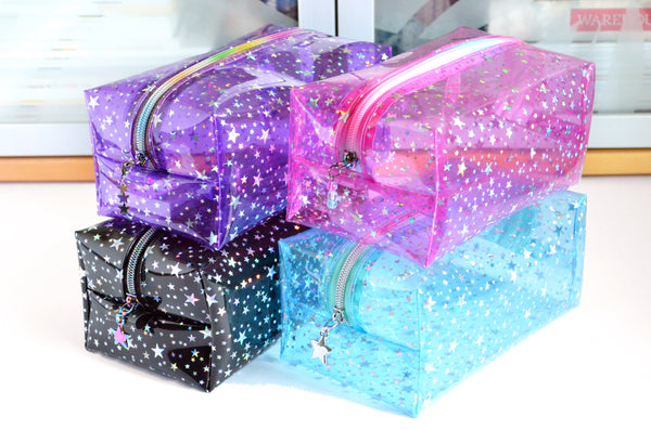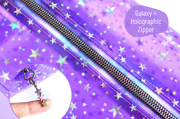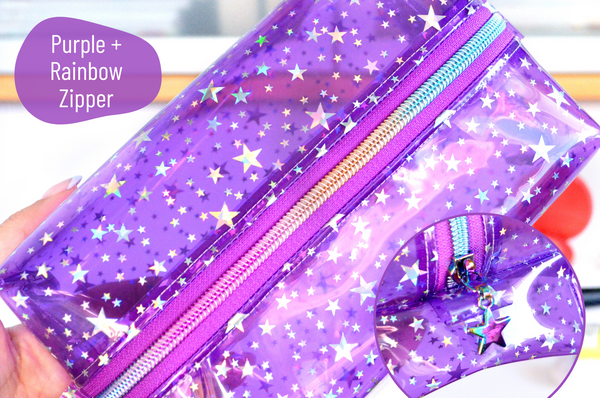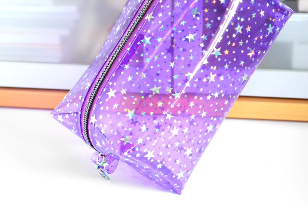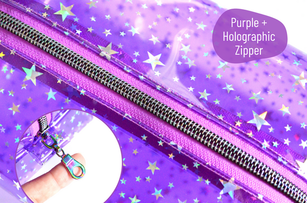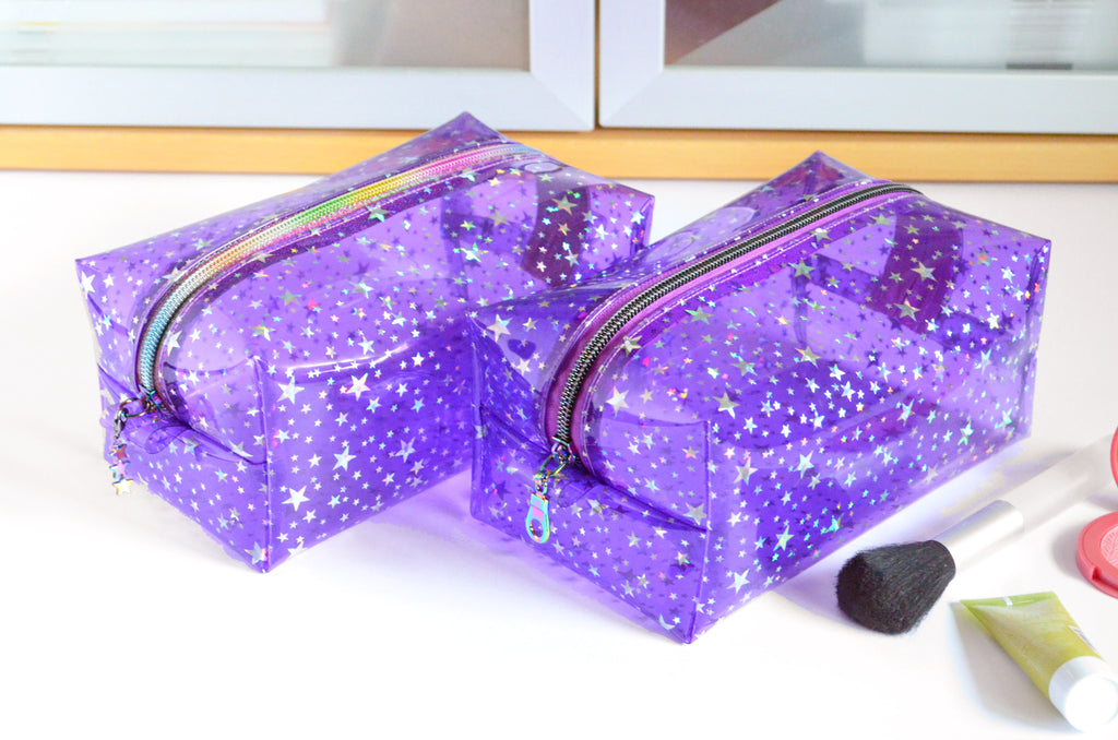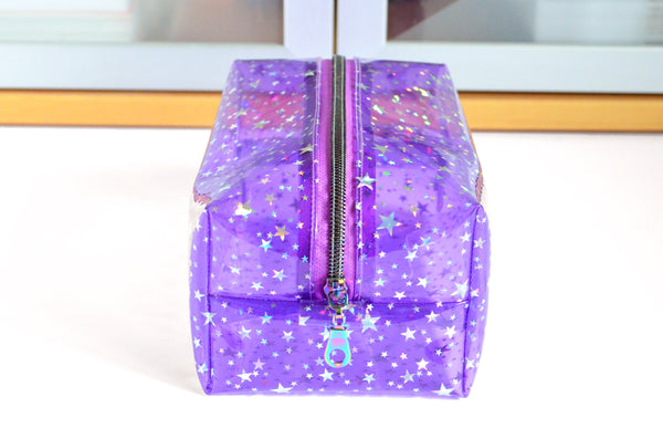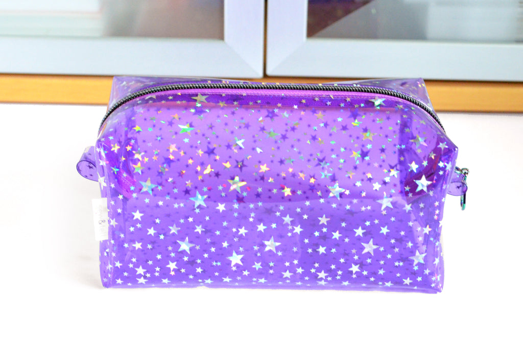 *Clear Vinyl* Purple Holographic Stars Toiletry Bag