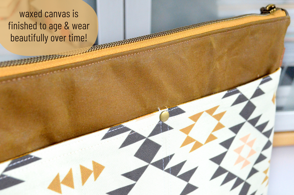 โข Made with quality waxed canvas & designer fabrics on the exterior
