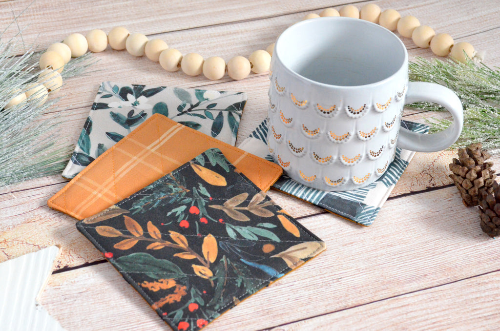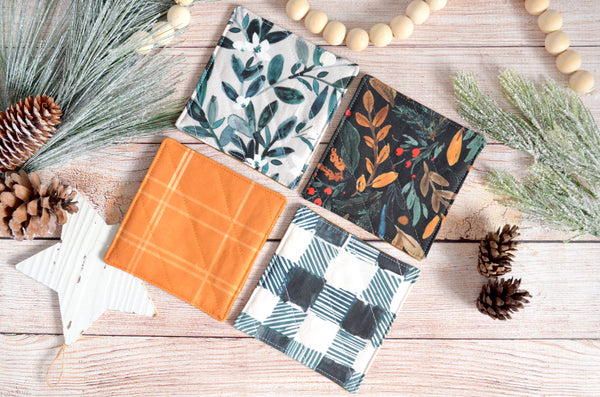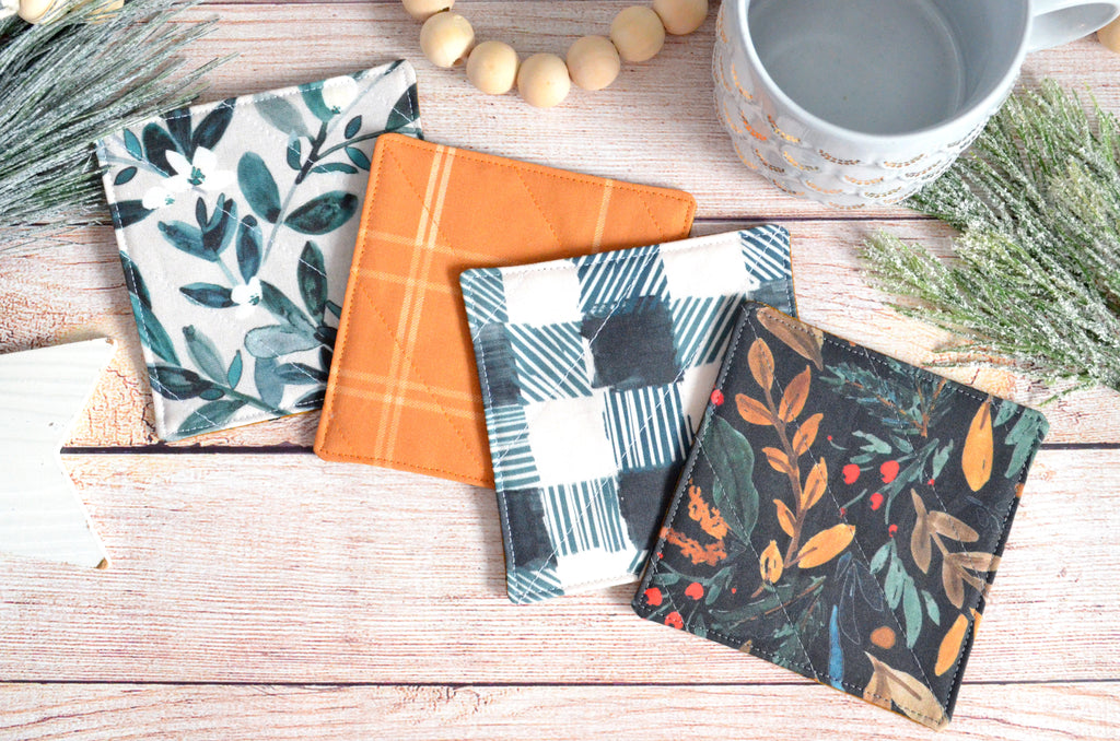 โ This set of four fabric coasters features a beautiful selection of modern holiday fabrics! Please note, exact fabric placement may vary from some of the photos shown.