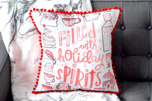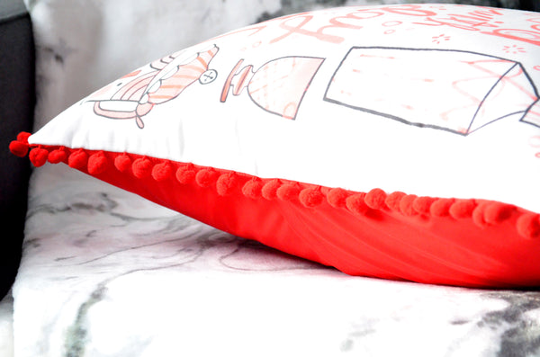 These beautiful pillow covers feature a variety of fun prints and patterns for the holidays! This year's pillow collection features graphics designed by Ksenia of Lokko Studio and Mio Buono of Mio Buono Design. On the back-side you'll find a coordinating cotton fabric, finished off with a lovely pom-pom or tassel fringe trim!
