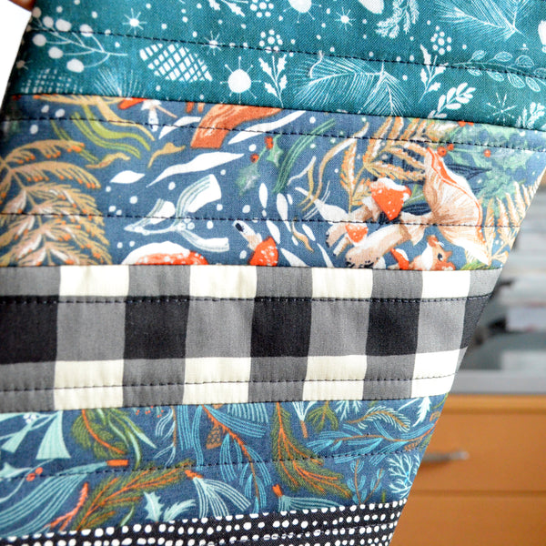 โข Front panels are quilted with beautiful straight-lines in a coordinating thread colour
