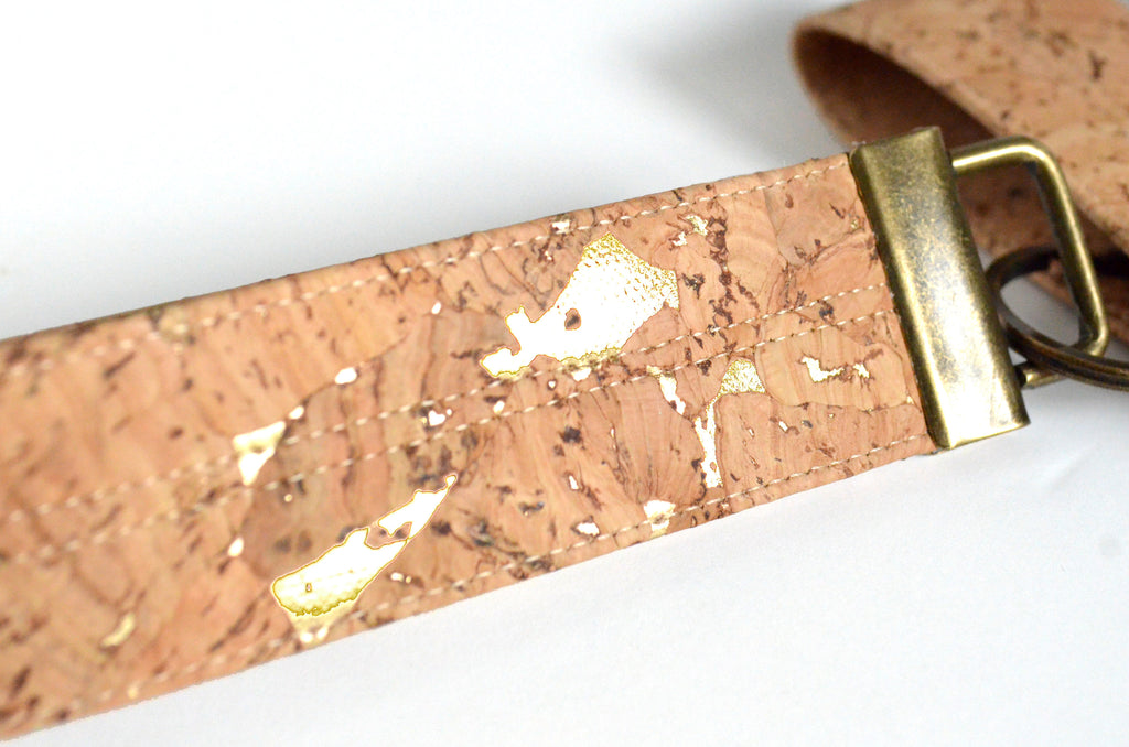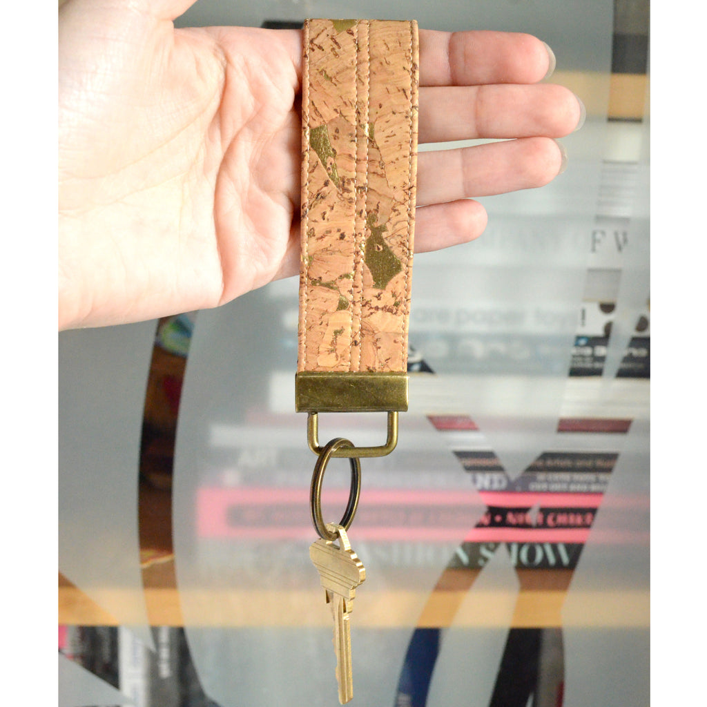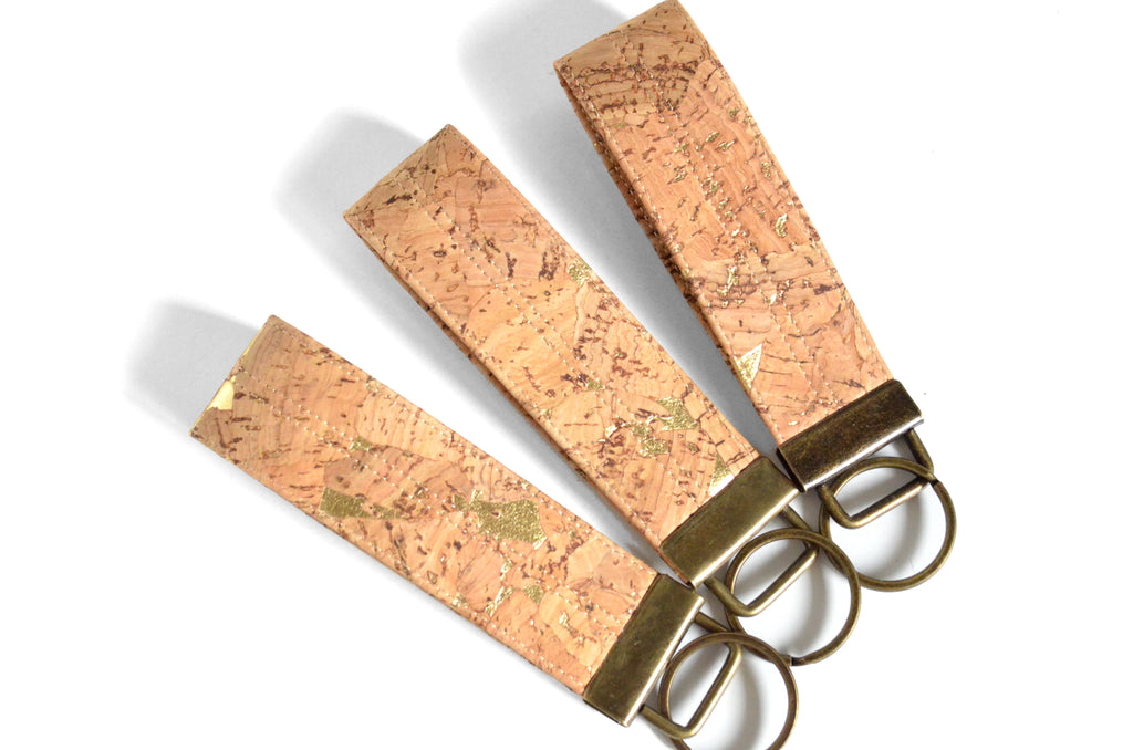 ★ These key fobs feature a gorgeous cork leather with metallic gold accents! Please note that exact pattern placement of the cork will vary, as shown in the photos.
