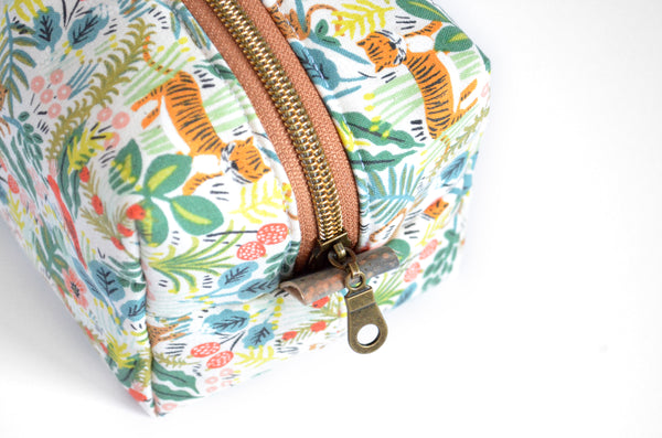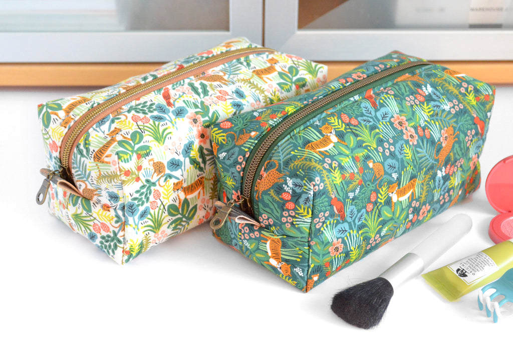 These toiletry boxy-bags are perfect for use both during travel and for everyday organization, featuring bright and beautiful designer cotton fabrics. Their large size and boxy shape allow you to keep your makeup, toiletries, hair accessories, and more, all together in one place during travel! The large zipper which runs the entire length of the bag also allows it be opened up completely, providing easy access to view and find whatever it is you need inside.