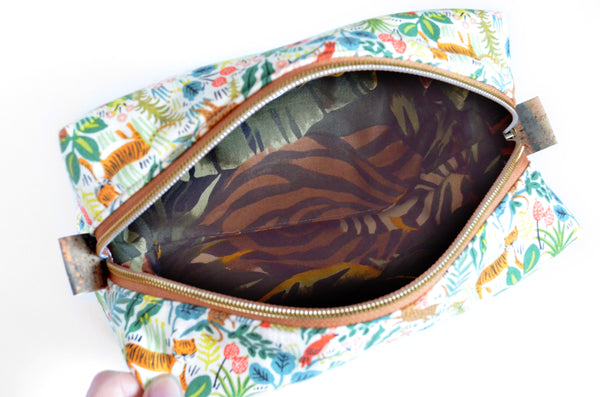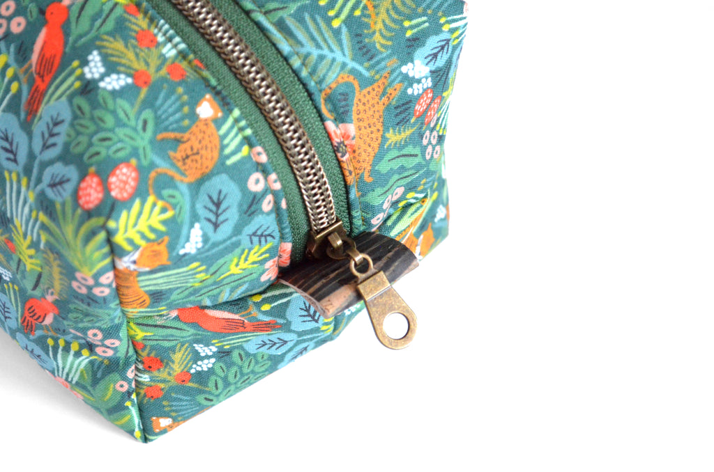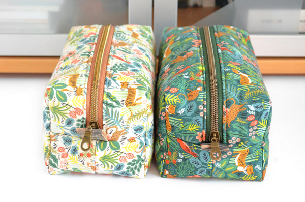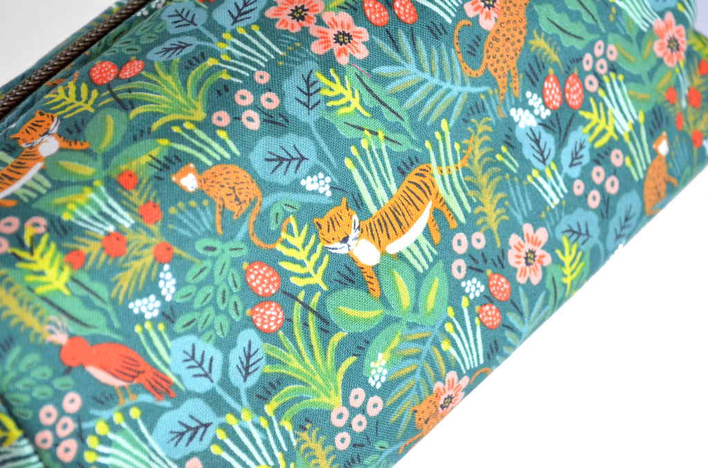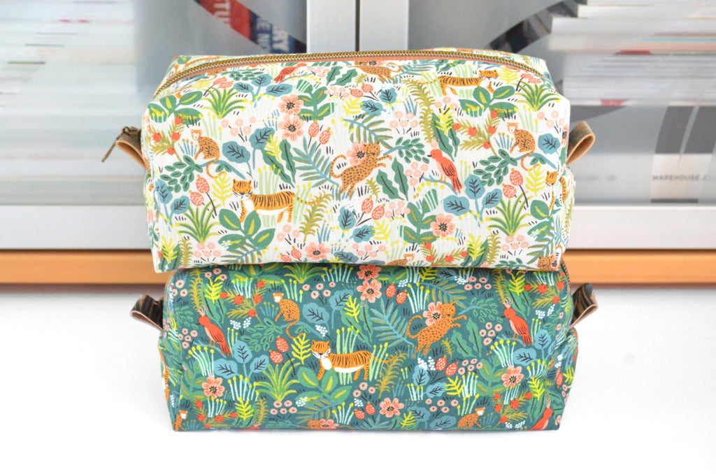 โ These green & beige boxy bags feature a beautiful jungle-themed fabric designed by Rifle Paper Co! These bagsย also feature coordinating cork-leather zipper tabs. Please note that exact fabric placement may vary from some of the photos shown.