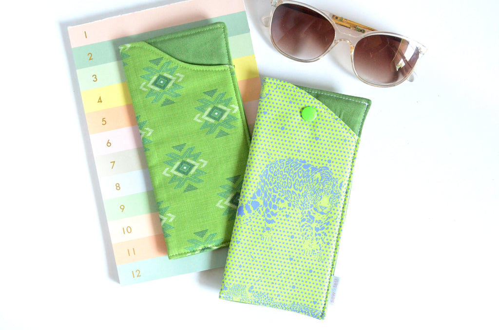 ★ These green glasses cases feature two fun boho & leopard print fabrics