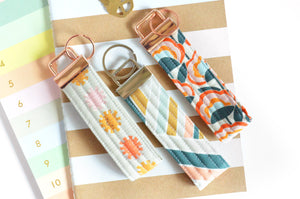 These fabric key fobs feature a beautiful mix of designer cotton fabrics, which are sure to make a stand-out appearance on your bag or your set of keys! Both the thickness and bright colours of these keychains make it a breeze to find your keys, whether digging through the bottom of your purse or looking for them around the house. Not only do these key fobs make the perfect gift to slip in alongside a few other goodies, they are also each 100% unique! Theirย quilted natureย means that no two key fobs are ever sewn together exactly the same, making each one truly a one-of-a-kind piece!